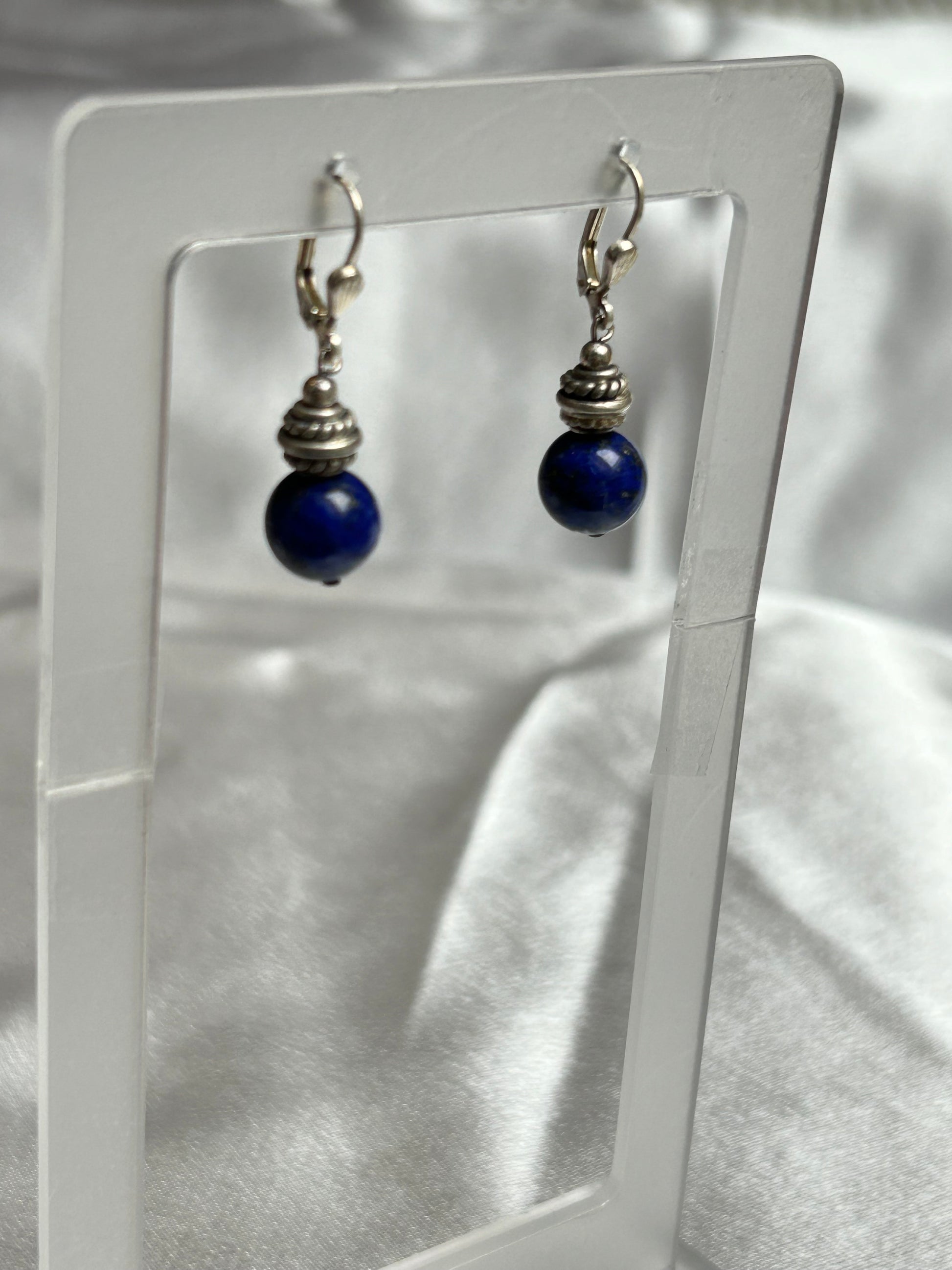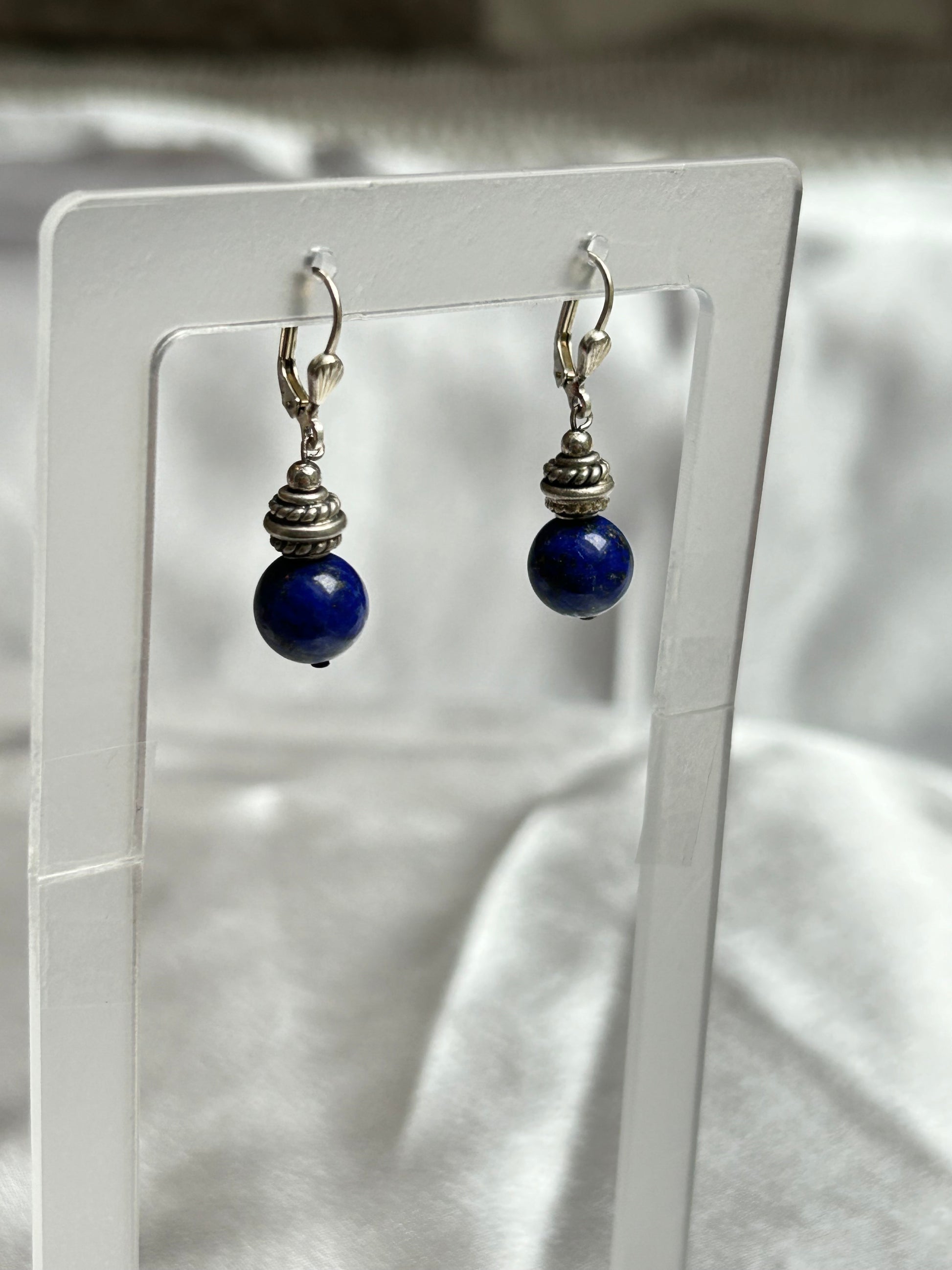 Boucles d’oreilles style dormeuses en argent et pierre bleu