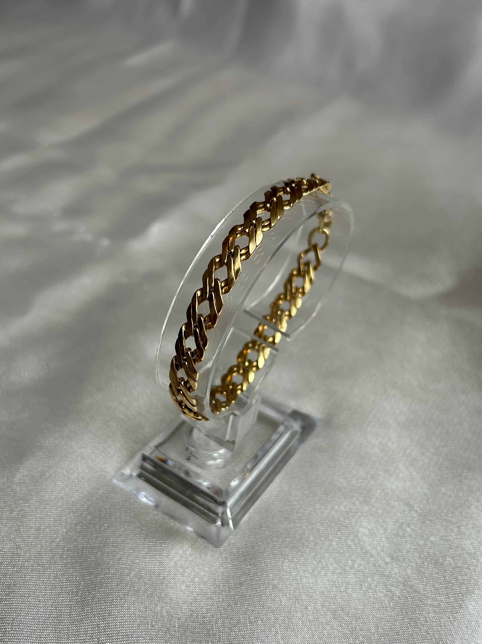 Découvrez ce magnifique bracelet en plaqué or d'occasion, un bijou unique qui allie charme et histoire.
