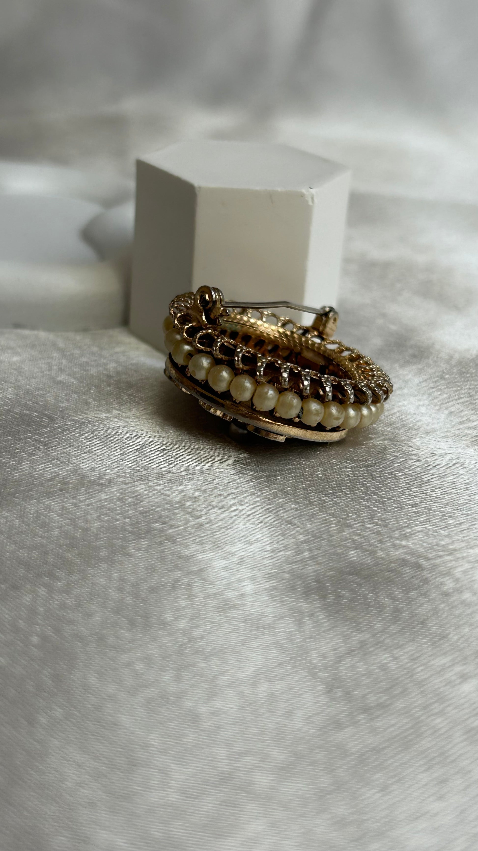 Découvrez cette magnifique broche vintage doré et perles, un bijou unique qui allie charme et histoire