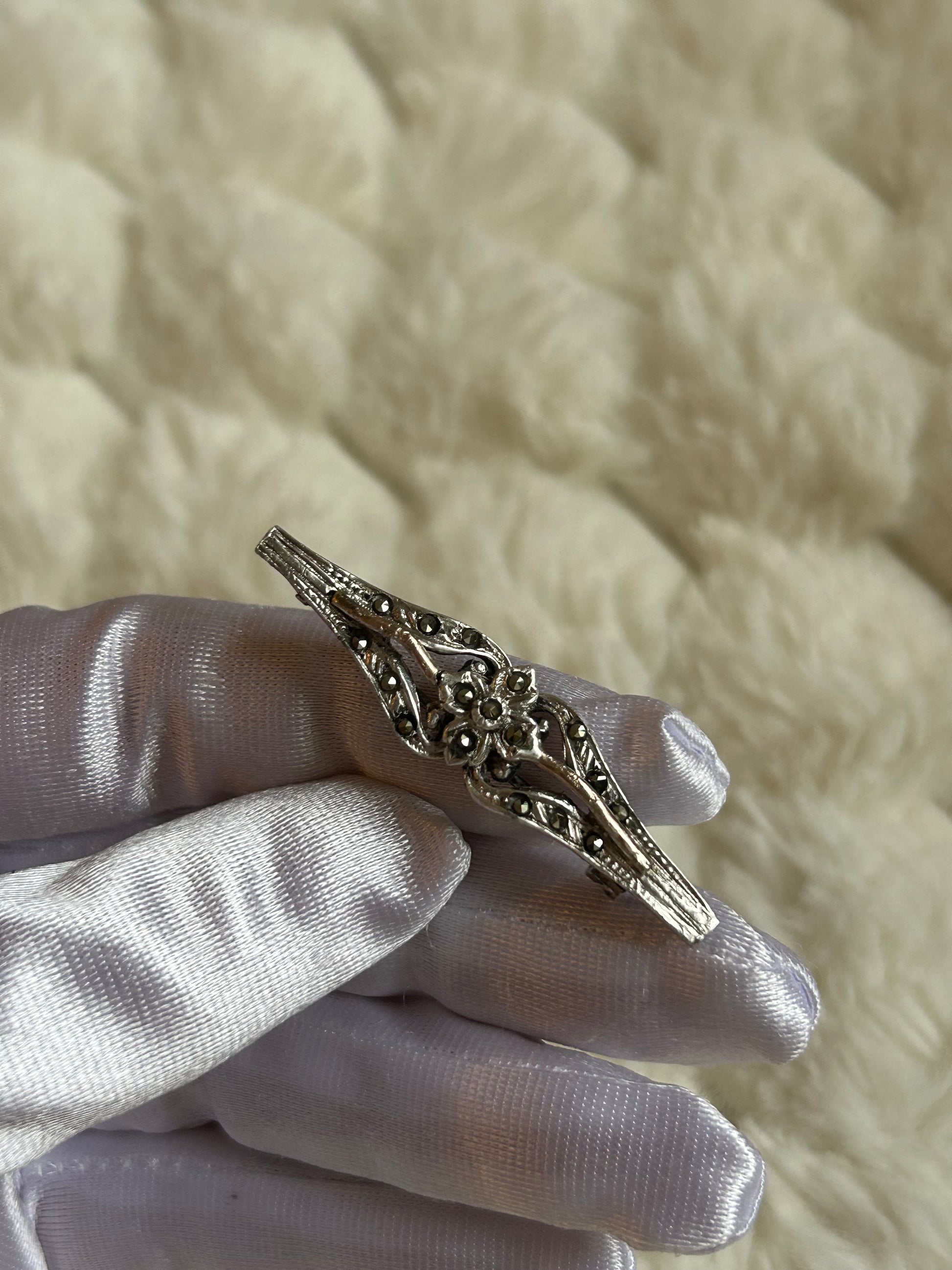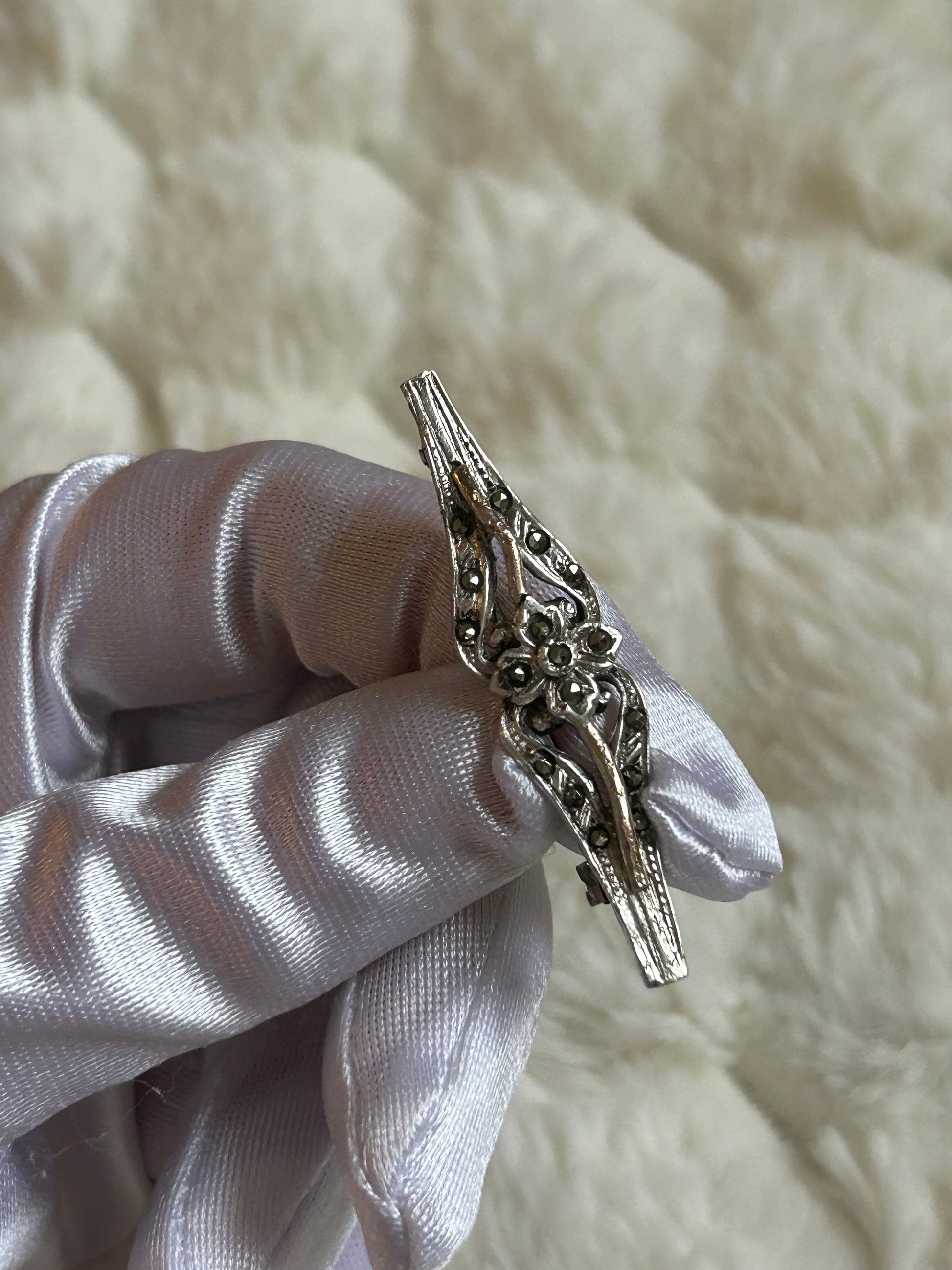 Optez pour la seconde main avec cette splendide broche vintage de couleur argenté avec des strass noir