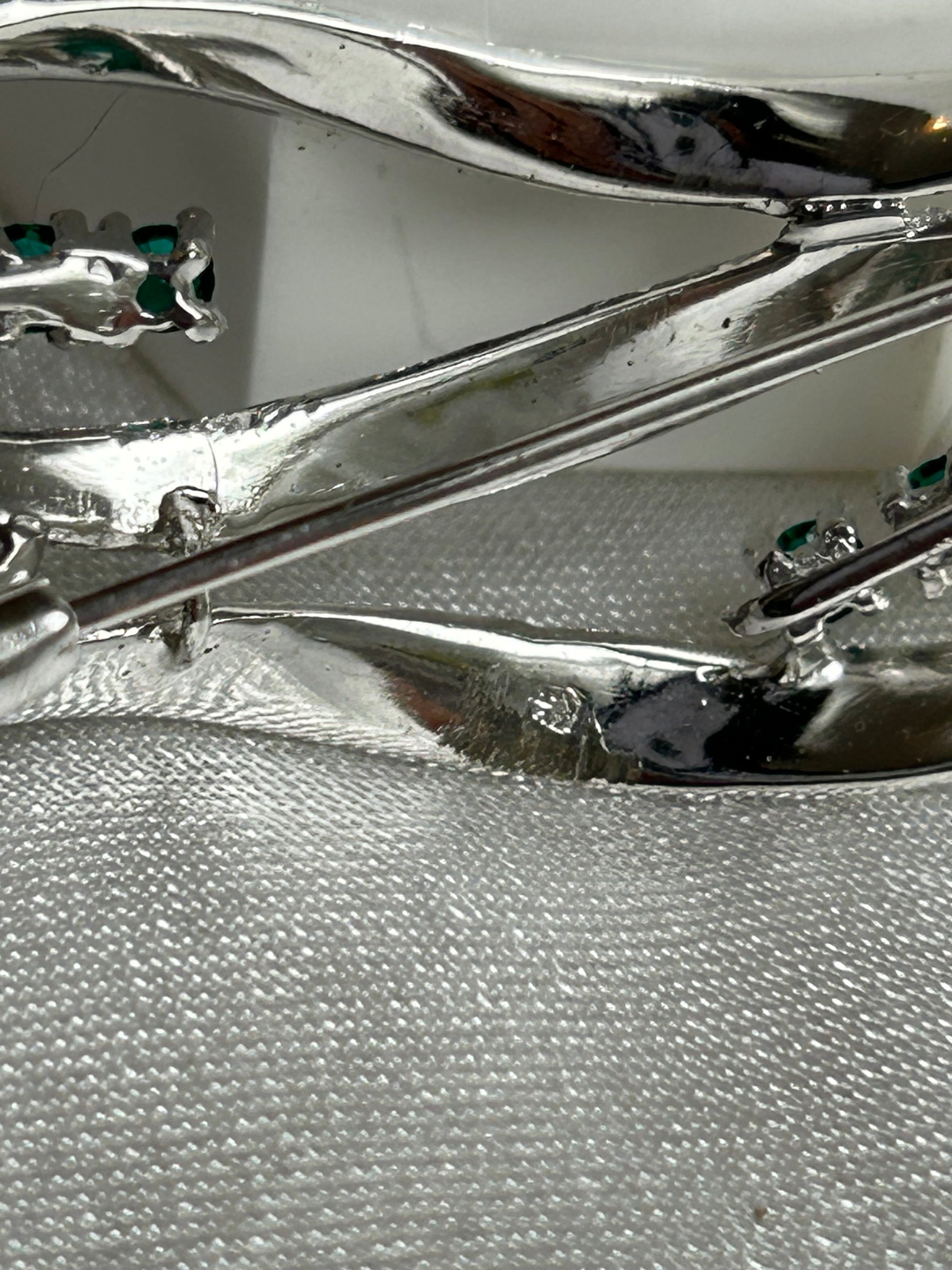 Broche vintage argenté et pierre verte
