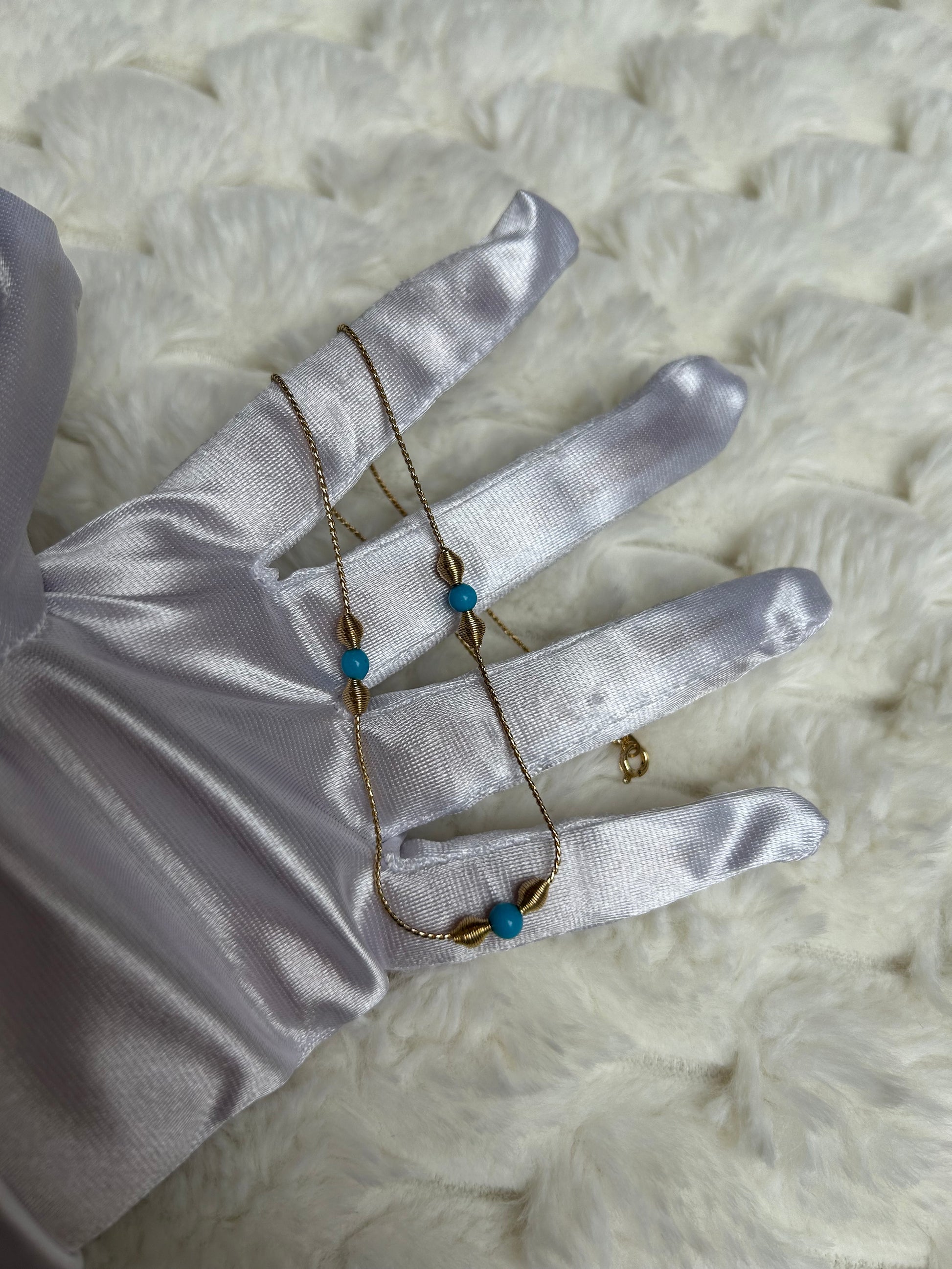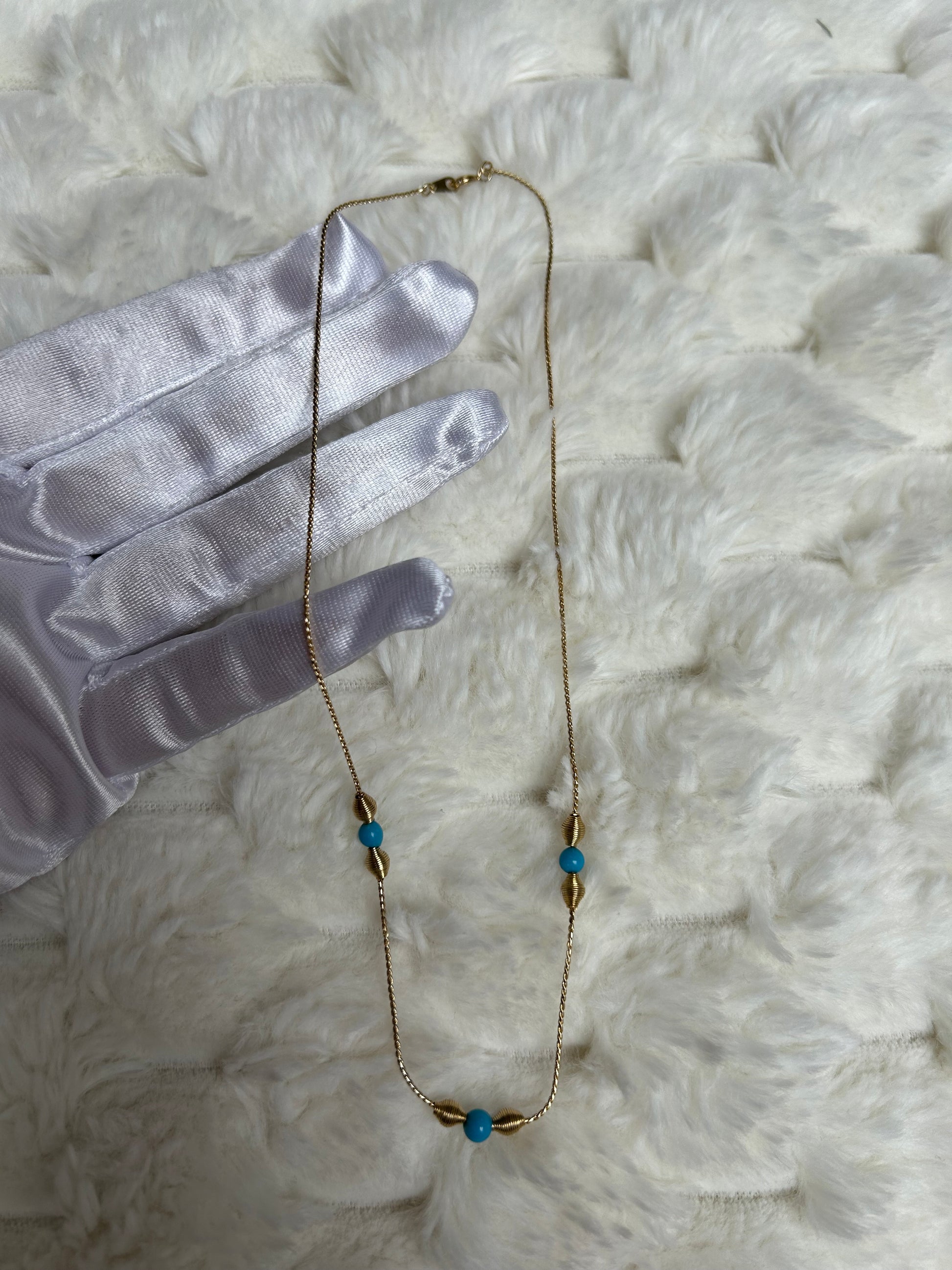 Découvrez ce magnifique collier fantaisie d'occasion, un bijou unique qui allie charme et histoire. Très jolie modèle doré et bleu